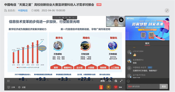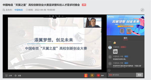 为了贯彻落实国家发展和改革委员会、教育部、人力资源和社会保障部等部门联合印发的《关于深入实施创业带动就业示范行动力促高校毕业生创业就业的通知》(发改办高技〔2022〕187号)文件精神,做实双创示范基地结对共建,4月6日,开云kaiyun官网与中国电信集团有限公司联合举办“天翼之星”高校创新创业大赛线上宣讲暨科创人才需求对接会。学校创新创业学院相关负责人以及近300名师生代表参加了线上会议。
