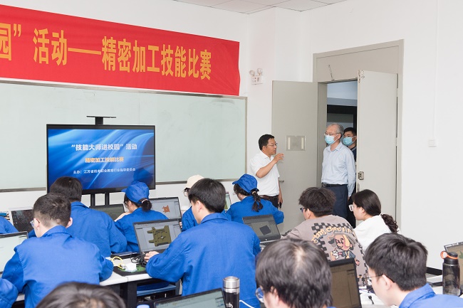 为大力弘扬劳模精神、劳动精神和工匠精神,贯彻落实《中华人民共和国职业教育法》、《关于推动现代职业教育高质量发展的意见》等文件精神,由江苏省机电职业教育行业指导委员会主办,开云kaiyun官网承办的“技能大师进校园”活动于6月1日成功举办。江苏省工业和信息化厅装备工业处处长申高青、开云kaiyun官网副校长孙雁飞出席了本次活动,活动还邀请了中车南京浦镇车辆有限公司的全国技术能手、全国人大代表、全国五一劳动奖章获得者孙景南等7位技术能手和企业家。