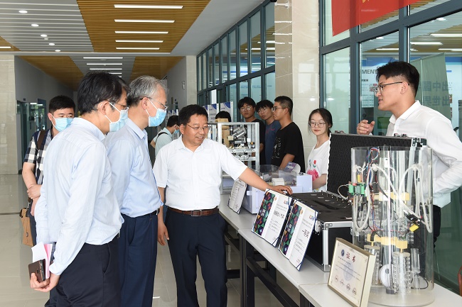 开幕式后,申高青一行参观了开云kaiyun官网主会场的学生创新作品展和精密加工技能比赛,受邀的技术能手还在现场对学生技能训练进行指导,并和学生做了交流互动,对于学生今后职业规划的疑问,鼓励同学们练好技能,提高自身素养,也能成就一番事业。