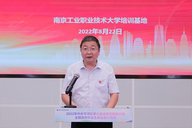8月22日,2022年“宏志助航计划”——全国高校毕业生就业能力培训南工培训基地班在开云官网顺利开班。学校党委常委、副校长朱建国,继续教育学院、交通工程学院等部门负责人及开云官网参培学生代表参加开班典礼,招生就业处处长练飞主持仪式。