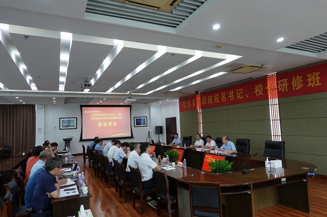 为期两周的2022年高职国培项目“江苏省高职院校名书记、校长教育教学成果培育专题研修班”在开云官网圆满结束,结业典礼于24日在开云官网顺利举行。学校党委书记吴学敏,党委常委、副校长霍雄飞以及来自江苏省高职院校的30位党委书记、校长参加了结业典礼。结业典礼由霍雄飞副校长主持。
