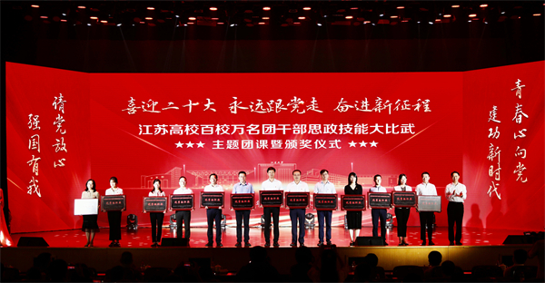 8月31日,由共青团江苏省委、中共江苏省委教育工委、新华日报社与江苏省学生联合会共同主办的江苏高校百校万名团干部思政技能大比武主题团课暨颁奖仪式在江苏大学落下帷幕。学校团委获评“优秀组织奖”,校团委副书记曲鹏在专职团干部专项赛中获特等奖,文化艺术教育中心教师宁伟男在兼挂职团干部和青年教师专项赛中获一等奖,经济管理学院李泽寰在基层团支部书记专项赛中获得二等奖,团委学生兼职副书记窦淼在基层团支部书记专项赛中获得三等奖。