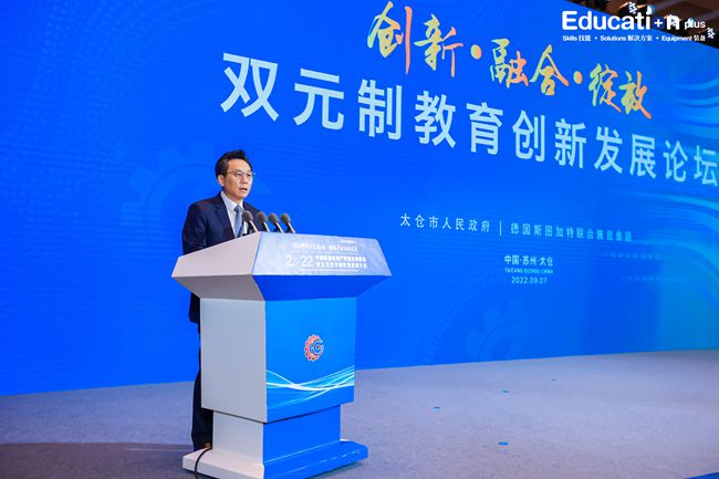 近日,EducationPlus2022中德职业教育产教融合博览会暨双元制教育创新大会在太仓帕尔曼酒店举行。校党委副书记、省高教学会产教融合研究会理事长马成荣应邀主持双元制教育创新发展论坛并作论坛总结,本科职业教育研究院院长李建国主持论坛圆桌会议。有近300名产业界、职业教育界人士出席论坛活动。