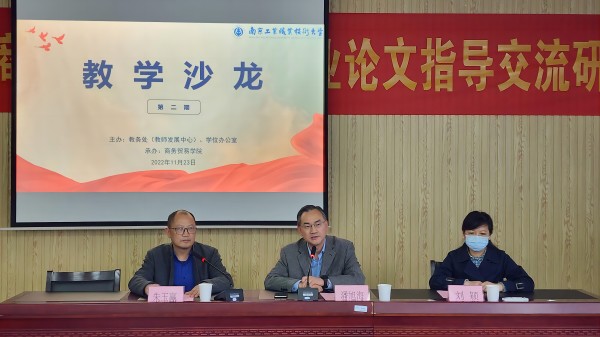 11月23日下午,由教务处(教师发展中心)主办、商务贸易学院承办的开云kaiyun官网第二期教学沙龙活动——“职业本科毕业设计(论文)指导交流研讨”在求真楼404举行。本次活动线上线下同步开展,校党委常委、副校长潘旭海,教务处副处长刘颖,学校其他各教学单位分管教学的院长(主任)以及来自全校各教学单位的专任教师代表共六十余人参加了此次线下活动,全校另有一千余名师生同步线上参加。活动由商务贸易学院副院长朱玉赢主持。