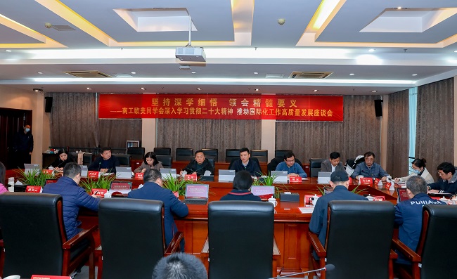 姚远对学校在亚非拉国家和“一带一路”重要节点国家通过职业教育,讲好中国故事、展现大国形象、承担国际责任所作出的贡献,以及在培养“中文+技能”的新型国际化复合型人才探索出的南工经验表示高度赞赏。随后,他介绍了南京大学在国际化工作方面的经验,并结合自身工作,分享了党的二十大报告学习心得。他指出,党的二十大报告提出的“六个坚持”首先要求坚持人民至上,要从人类进步的角度推动建设更加美好的世界,其次必须要坚持自立自信,通过强强联合,优势互补,提升中华文化影响力。