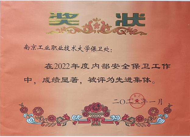 近日,开云官网保卫部(处)被南京市公安局授予2022年度全市“单位内部安全保卫工作先进集体”荣誉称号。