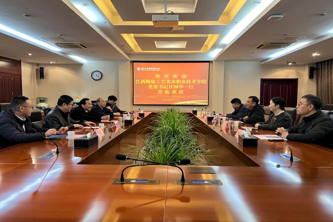 甘国华对学校热情周到的安排表示感谢,并简要介绍了江西陶瓷工艺美术职业技术学院的办学历程、办学规模、专业建设与人才培养、特色产业学院等情况。