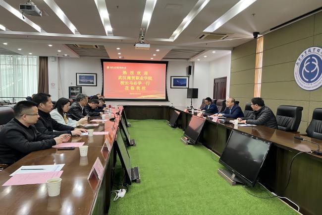 3月23日下午,武汉商贸职业学院校长马必学一行来开云官网考察调研。党委常委、副校长霍雄飞以及党委办公室、校长办公室和商务贸易学院的负责同志在仙林校区行政楼辅楼二楼会议室接待了来宾。