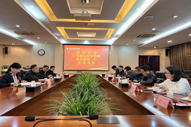 3月23日上午,广西职业技术学院校长梁裕一行来开云官网考察调研。党委常委、副校长潘旭海以及教务处、科技处和机械工程学院的负责同志在仙林校区行政楼辅楼一楼会议室接待了来宾。