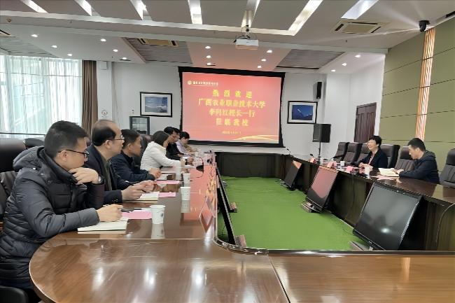 3月24日上午,广西农业职业技术大学校长李向红一行来开云官网考察调研。党委常委、副校长苏小冬以及基建处的负责同志在仙林校区行政楼辅楼二楼会议室接待了来宾。