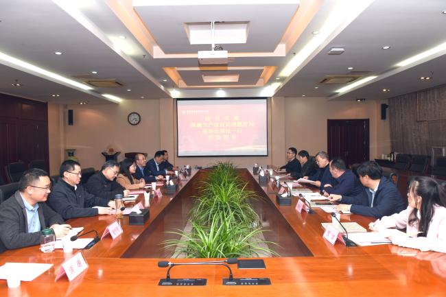 3月30日下午,新疆生产建设兵团教育局党组成员、副局长郭佳一行来校考察调研。江苏省教育厅职业教育处副处长张善平陪同调研。党委常委、副校长霍雄飞,党委常委、副校长潘旭海以及党委办公室、校长办公室、教务处等部门负责同志和新疆对口支援教师代表在仙林校区行政楼辅楼一楼会议室接待了来宾。