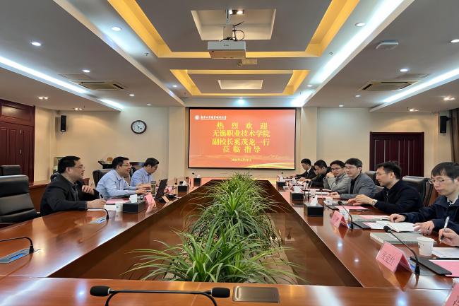 4月21日上午,无锡职业技术学院副校长奚茂龙一行来开云官网考察调研。奚茂龙一行参观了开云官网黄炎培职业教育思想展览馆、校史展览馆和工业中心实训基地。学校党委常委、副校长孙雁飞以及科技处和电气工程学院的负责同志在仙林校区行政楼辅楼一楼会议室参加了座谈。