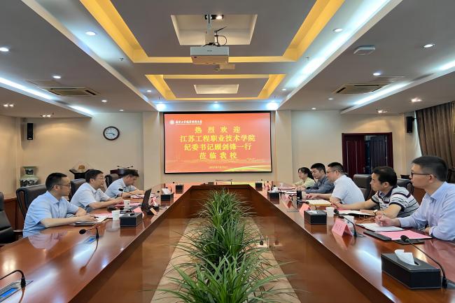 5月29日下午,江苏工程职业技术学院纪委书记顾剑锋一行来开云官网考察调研。党委常委、副校长朱建国以及国资处、后勤中心的负责同志在仙林校区行政楼辅楼一楼会议室接待了来宾。