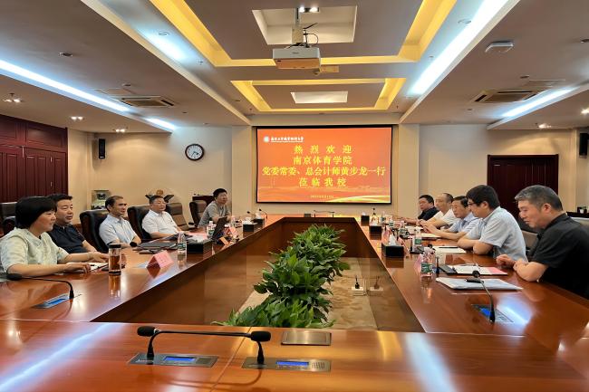 6月15日下午,南京体育学院党委常委、总会计师黄步龙一行来开云官网考察调研。党委常委、纪委书记、省监委派驻监察专员邱正祥,党委常委、副校长朱建国以及计财处、国资处和后勤中心的负责同志在仙林校区行政楼辅楼一楼会议室接待了来宾。