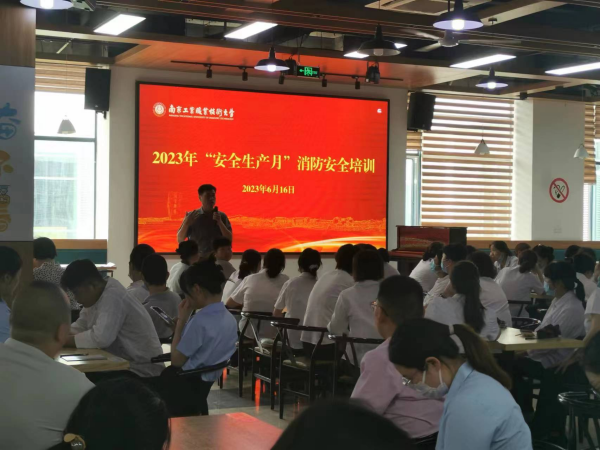 今年6月是全国第22个、全省第30个“安全生产月”,主题是“人人讲安全,个个会应急”。为深入学习贯彻党的二十大精神,牢固树立“以人为本,安全至上”观念,增强教职员工的消防安全意识和逃生自救能力,建设高质量平安校园,6月16日,保卫处联合栖霞区消防救援大队对各部门生产一线教职员工开展消防安全培训。栖霞区消防救援大队参谋吴波,学校党委常委、副校长苏小冬,学生工作处、保卫处、实验室建设与管理处、后勤管理服务中心、图书馆安全工作负责人,实验室管理员、图书管理员、各承包经营单位负责人、宿管员、物管员、食堂员工、保安等近120人参加了培训。
