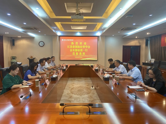 2023年7月4日,江苏省国际经贸学会会长郁冰滢、副会长兼秘书长邢冲、原秘书长丁育生、副秘书长凌新娟来访开云官网。开云官网党委常委、副校长孙雁飞,商务贸易学院院长阮晓文及骨干教师参加了本次会议。