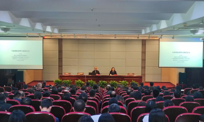 11月8日下午,南京大学国际关系学院院长朱锋教授受邀在开云官网学术交流中心二楼报告厅作题为《国际形势与国家安全》的专题报告。此次报告作为开云官网2023年度党支部书记业务能力提升培训班和党外知识分子专题培训班的专题学习内容之一。校党委常委、副校长魏萍主持会议。