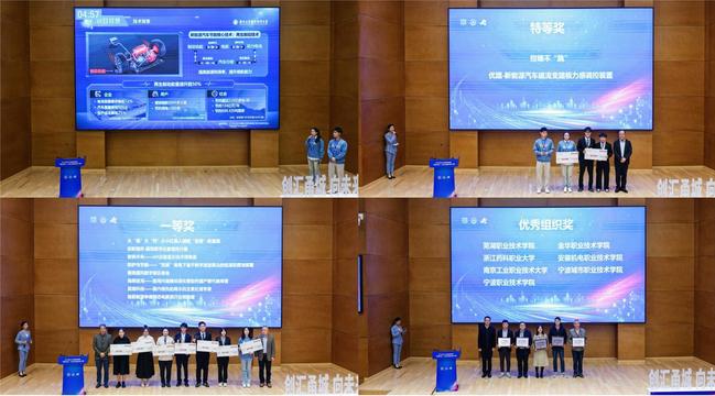 11月11日至12日,由宁波市教育局主办的2023年长三角高职院校“甬创未来”大学生创新创业大赛总决赛在宁波职业技术学院举行。经过激烈角逐,开云官网有6支团队脱颖而出,进入总决赛,并最终斩获特等奖1项、一等奖1项、二等奖1项,开云官网获大赛优秀组织奖。其中,交通工程学院《优踏-新能源汽车磁流变踏板力感调控装置》项目(团队成员:张文俊、袁勇怡、钱晓羽、张如春、金帝言、梁凯、李浩航、冯光瑜;指导老师:屈贤、张金龙)摘得最高奖项——特等奖,并获得50000元奖金;电气工程学院《智眼未来——AR 近眼显示技术领跑者》项目(团队成员:张齐巧、吴振东、张于强、苏鑫、陈炫冰、谭雪芹、谢颖慧、高冉;指导老师:何智勇、杨燕、徐佳琛、李镇)斩获一等奖,并获得5000元奖金;电气工程学院《火电能源守护者—— 国内首套火电厂管道热时效评估装置》项目(团队成员:杨洋、韩佳乐、崔志浩、薛猛;指导老师:江奕)荣获二等奖,并获得3000元奖金。