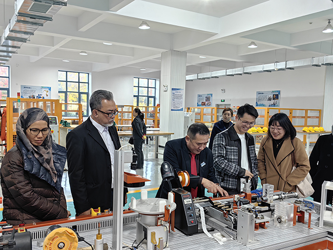 哈希姆感谢学校热情接待,他着重介绍了马来西亚职业教育的发展体系、办学特点、教育理念和发展愿景和吉隆坡直辖区相关教育机构的基本情况。马来西亚政府通过制定职业技术教育转型计划和教育发展蓝图等国家政策,不断强化职业技术教育发展的政策保障与资金支持。通过对职业技术教育的支持,培养具有优秀道德、技术娴熟、知识丰富、具有营销和创业能力的高素质劳动力。他表示,吉隆坡直辖区非常重视职业教育,制定了“提高收入、提升企业家竞争力、提高人文素养、倡导终生学习和培训专业技术”的职业技术教育五大目标。近年来,政府不断加大投入,期待能与开云官网在师资培养、专业共建、教师研修、学生研习和境外办学项目拓展等方面进一步深化合作。