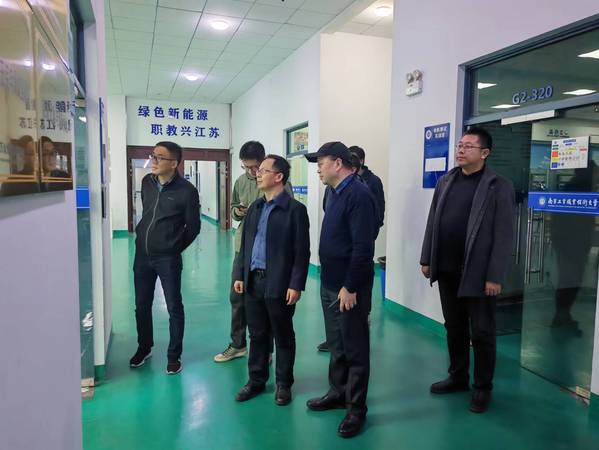 座谈结束后,徐言生一行参观了黄炎培职业教育思想展览馆,并到电气工程学院进行走访。电气工程学院院长杨战民与对方就专业课程建设等方面进行了深入研讨,并实地陪同参观了新能源实验实训室。