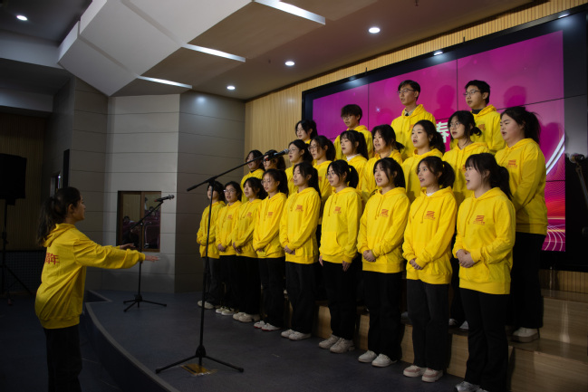 12月20日下午,艺术设计学院首届“赓续红色血脉,唱响职教风采”大合唱决赛在艺术设计学院综合楼六楼报告厅举行。天堂校区管理办公室服务保障科科长韩非、艺术设计学院团委书记何亦然、副书记靳喆参加活动并担任评委。