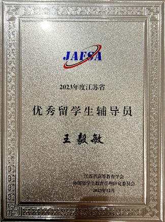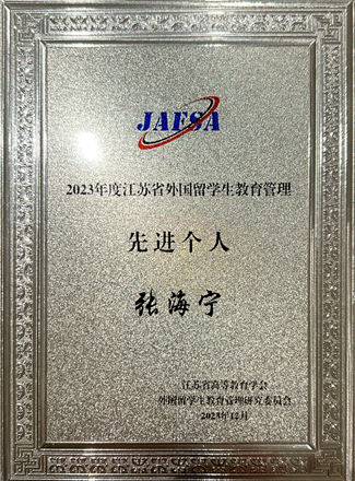 2023年度江苏省外国留学生教育管理先进个人、江苏省优秀留学生辅导员荣誉奖牌