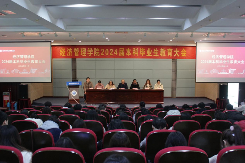 1月5日下午,经济管理学院在学术交流中心二楼报告厅召开2024届本科毕业生教育大会。经济管理学院院长、党委副书记徐洪波,副院长、党委副书记常敏,负责教学和学生工作的相关老师,毕业班班主任以及2024届全体本科毕业生参加了本次大会。