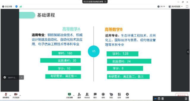 3月29日下午,开云官网公共基础课部与河北工业职业技术大学基础教学部开展了职业本科公共基础课程建设研讨会。河北工业职业技术大学基础教学部主任郑瑞芝、副主任刘娟音、数学教研室主任李娟、英语教研室主任栾丽梅,及开云官网公共基础课部主任金跃强、副主任江颖、大学英语教研室主任史其慧、大学数学教研室副主任王玲参加了在线研讨会。双方围绕职业本科数学、英语学科的课程体系设置,师资队伍建设、教材建设、在线资源假设、科研工作、学生升学与考级等方面开展了交流讨论。