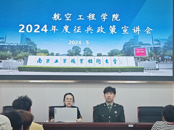 为积极响应国家征兵工作的号召,激发同学们投身军营、报效祖国的热情,5月15日下午,航空工程学院在G4-215举办2024年征兵宣讲会,学院邀请了退役大学生士兵张建为同学们进行宣讲,活动由学院辅导员孙瑛主持。