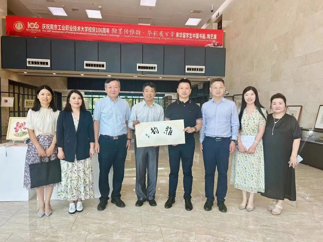 当日,江苏省留管学会副理事长兼秘书长张海军、江苏省留管学会副理事长俞晓南、江苏省留管学会秘书处主任王新瑞,栖霞区政府办(外办)副主任张丽华来校调研来华留学生工作,在学校党委书记、校长谢永华及国际教育学院相关负责人陪同下参观了展览,并给予高度评价。