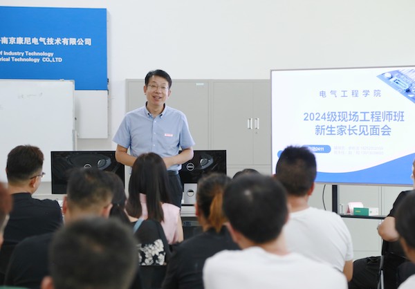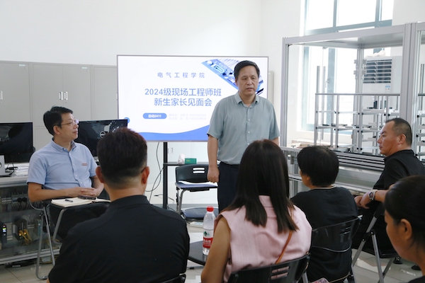 9月5日下午,电气工程学院在躬行楼303室召开自动化技术与应用专业特区首届现场工程师班新生家长见面会。校党委常委、副校长孙雁飞出席会议,班主任赵昀、新生及家长共同参会。会议由电气工程学院党委书记朱旭平主持。