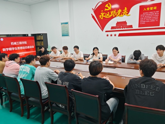 为全面、客观、准确研判我院学生思想动态,深入了解学生关注的各类热点问题和诉求,进一步提高大学生思想政治教育工作的针对性、实效性和科学性,机械工程学院于9月26日下午在G2-212会议室组织召开了2024年秋季学期学生思想动态座谈会,学院党委副书记、副院长赵颖,辅导员和学生代表参会。