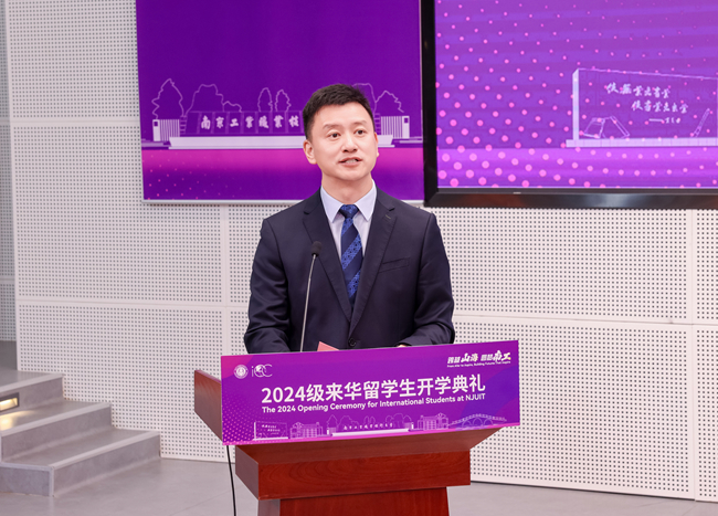 张丽华代表栖霞区政府办(外事办)、南京市公安局栖霞分局、栖霞区红十字会向2024级的新同学表示了诚挚的欢迎。她表示,作为外事部门,将为留学生在栖霞的学习与生活精心服务、保驾护航,也希望留学生在栖霞的经历成为人生中不可磨灭的印记和绚丽多彩的篇章。她表示,南工的教育国际化在仙林大学城各高校中位于前列,政府办(外事办)将进一步深化校地融合,以与开云官网共建的来华留学生国情教育基地为平台,策划组织更多高质量活动,使留学生全面、深入、立体地了解中国、发现南京、融入栖霞。