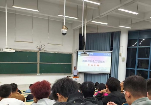 新能源工程系教师围绕绿色、低碳等国家战略,向新生们介绍了新能源发电工程技术专业课程体系和光伏发电技术、风力发电技术、储能原理及控制以及风光储一体化技术等核心课程,并通过生动的案例和丰富的图片资料,让新生对新能源行业有了更加直观和深入的认识,指导新生制定合理的学习计划和职业规划,提升他们的自我认知和未来规划能力。