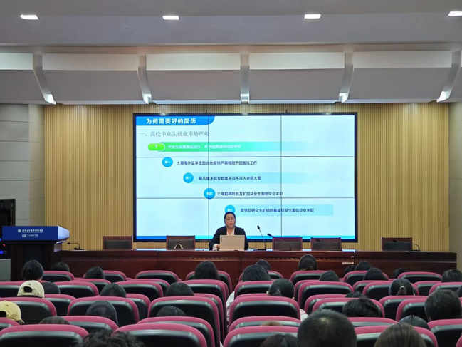 为进一步提升艺术设计学院2025届毕业生求职就业能力,帮助同学们剖析在简历制作过程中遇到的困惑,进一步引导在校学生明确就业目标、做好职业生涯规划,10月11日下午,“简”指春秋,“历”争上游——简历制作指导讲座在天堂校区综合楼606报告厅开讲。辅导员刘璐璐担任主讲,学院2025届毕业生及对简历制作感兴趣的同学共200余人参加了讲座。