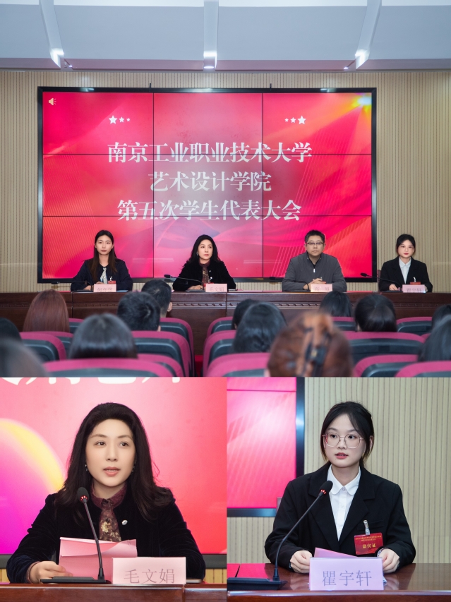 毛文娟代表学院党政领导班子对大会的召开表示热烈的祝贺,在充分肯定学院学生会工作所取得成绩的基础上,希望艺术学子们通过此次大会进一步明确任务、开拓创新、勇于担当,书写不朽青春,弘扬艺术设计学院学生会的优良传统,永怀赤子之心、勇担光荣使命,争做具有“金铁美强创”特质的新时代南工学子,投入到发展新质生产力的青春实践中去。