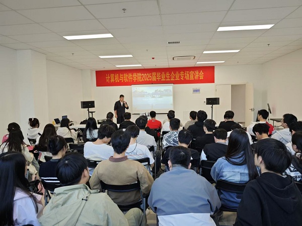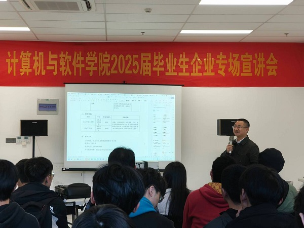 为了切实做好2025届毕业生就业工作,拓宽学生就业渠道,11月13日下午,计算机与软件学院邀请了深圳讯方技术股份有限公司、中软国际信息技术有限公司、元图时代科技有限公司、南京安世亚太信息科技有限公司等4家业内知名企业在双创大楼218室、221室举办2025届毕业生专场宣讲会,学院240多名毕业生踊跃参会。