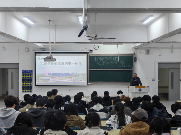 徐坚带来“实践是检验真理的唯一标准”专题讲座,他通过深入浅出的讲解,从《实践是检验真理的唯一标准》文章发表背景、基本内容和意义三个方面,回顾了“实践是检验真理的唯一标准”这一论断的历史背景和重大意义,让在场的同学们深刻认识到其在推动我国思想解放、社会发展等诸多方面所起的关键作用。他鼓励同学们要重视实践调研,坚持知行合一,注重在实践中学真知、悟真谛,加强磨炼、增长本领。同学们聆听讲解、认真感悟、深入思考,整个公开课氛围热烈。