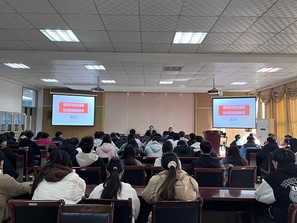 讲座中,翟吉和以时间线为轴,系统地梳理了学校前身中华职业学校创办背景,从校史变迁、校歌创作、校训挖掘、人物故事等方面娓娓道来,声情并茂地讲述了校史背后的红色基因,让同学们更加直观地感受到了学校的历史变迁和文化传承。同时殷殷嘱托作为新时代南工青年,要不忘学校办学初心、努力学好建设本领、牢固树立理想信念、大力弘扬时代精神,为建功新时代做好准备。